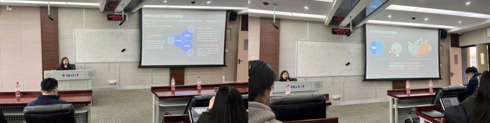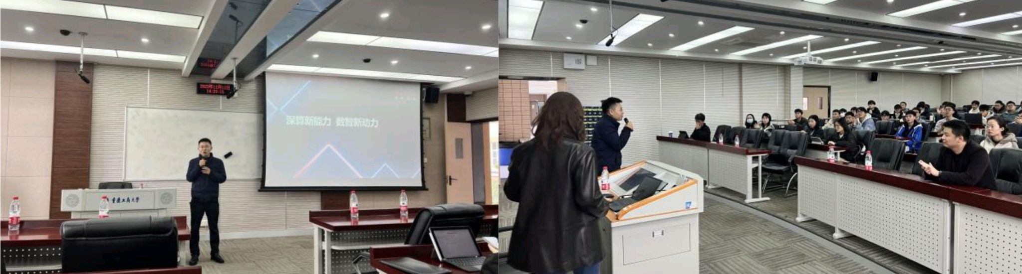 2023年12月12日下午2:30,公司邀请中科曙光的欧远洲、曲晓宇两位企业代表,在明智楼405教室举办了以“深算新能力,数智新动力”为主题的学术讲座。本次活动由秦华锋经理主持,全体研一、研二年级员工到场参加。