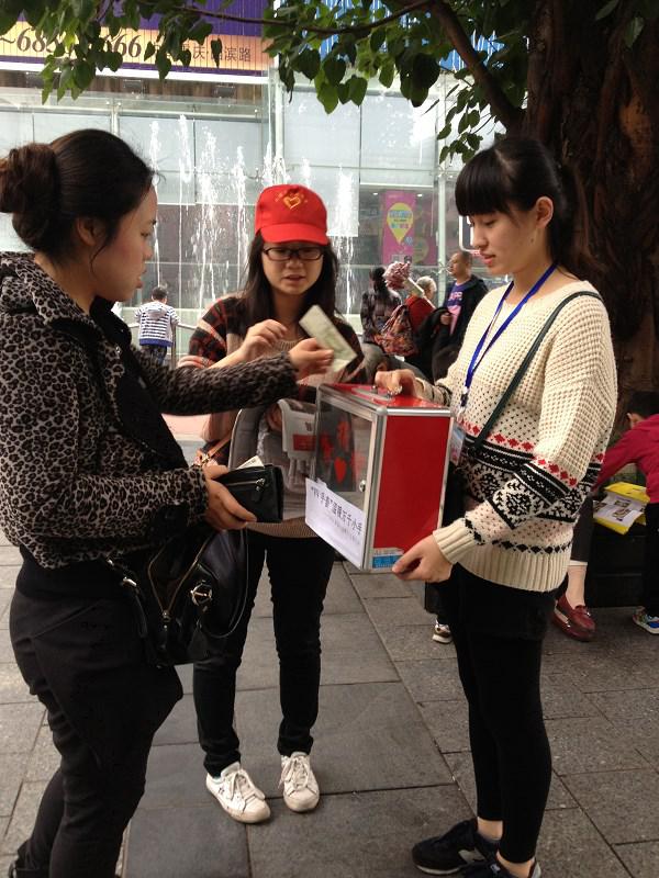 2013年11月9日,伟德国际victor1946义工志愿者协会在沙坪坝举行了义卖报纸活动,其目的是为了给雅安、彭水贫困地区的孩子们筹款,为了让这些买不起手套的孩子能在冬天能戴上手套,让他们的小手不再冰冷,让他们的心不再孤单。计信义协的干部干事积极参加了这次本次活动。