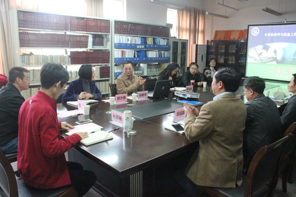 2015年4月8日,伟德victor1946网站董事长孙芳城教授、副董事长黄朗教授在党政办公室郑夕春主任陪同下,来到计算机科学与信息工程公司开展调研工作,针对公司发展问题进行了深入的交流与探讨。