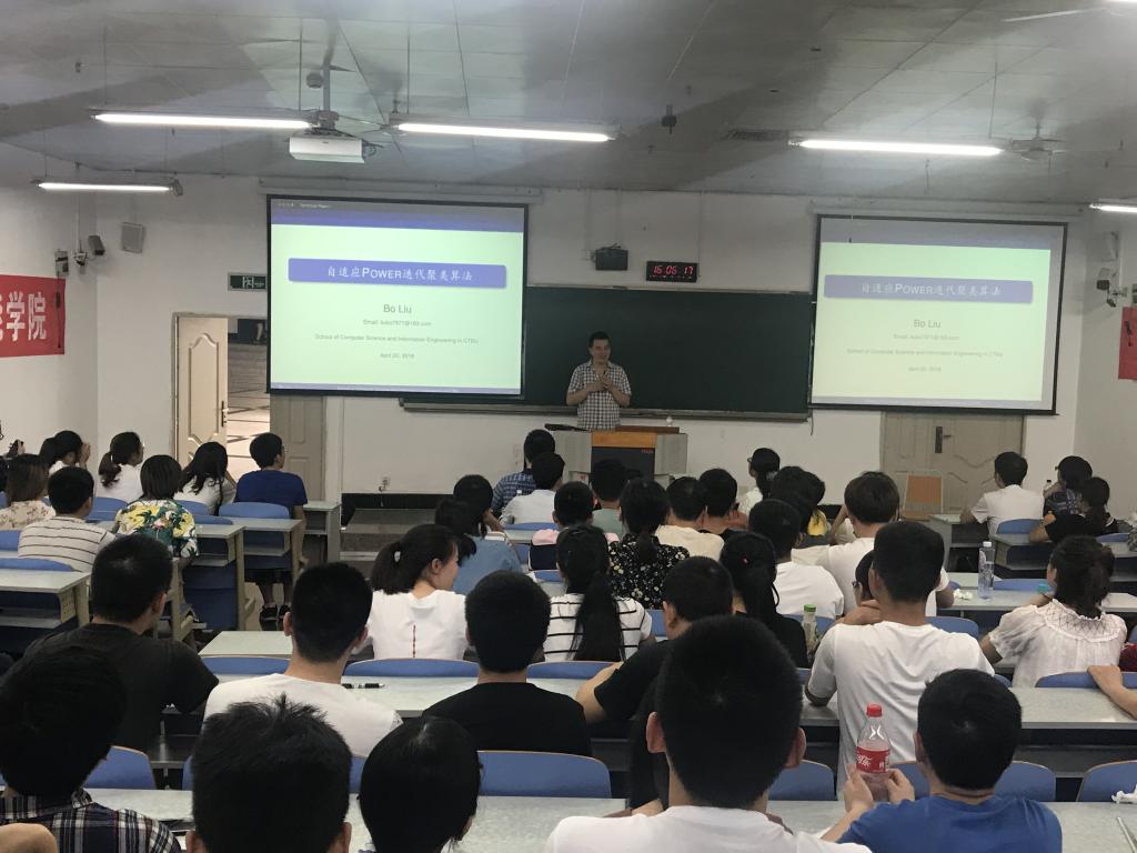 讲座的第二部分由刘波副教授主讲“自适应谱聚类算法”。刘老师以机器人学习中的监督学习和无监督学习的差异为切入点,介绍无监督学习方法之一的谱聚类算法的研究情况,并详细阐述了自适应谱聚类算法的原理及应用。