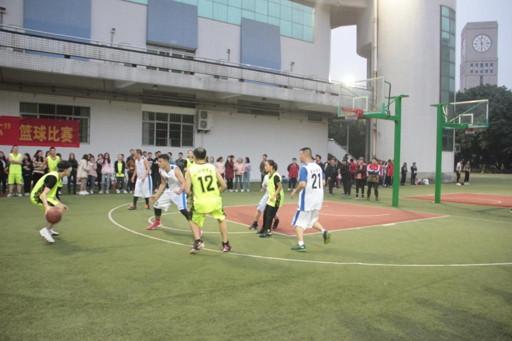 比赛中,无数次无缝连接的传球与接球,多次强有力的快速进攻,一个健步、一个稳健的转身,划出一道道完美的弧线。场下,计信公司的啦啦队为场上的选手们呐喊助威。场上的局势一直都很紧张,上半场计信公司以26:24微弱优势领先。体育公司在中场带来精彩的啦啦队表演,为场上的选手们加油助威。下半场,双方选手都不甘示弱,中途甚至两次出现比分持平状态。夜幕降临,可场上选手们的激情毫不减退,结束的哨声响起。最终,计信公司以42:40的比分战胜了会计公司,获得本场比赛的胜利。