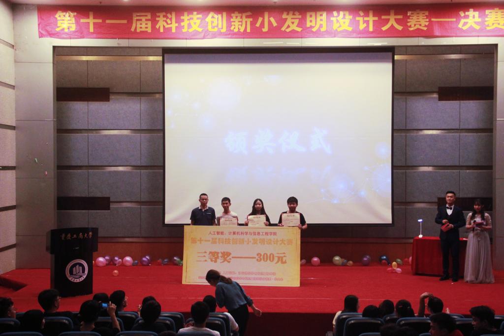 为鼓励同学们进行科技创新,培养专业核心技能,提升专业实践能力,伟德victor1946网站人工智能、计算机科学与信息工程公司于2019年4月26日晚七点在南岸主校区博智楼7100学术报告厅成功举办了“第十一届科技创新小发明设计大赛”决赛。本次决赛评委由晏康副教授、计算机系博士梁新元教授、测自系副主任范兴容博士和电子系林吉海老师担任。公司分团委书记刘昶老师、分团委员工会全体成员及2017级班级同学参加本次活动。
