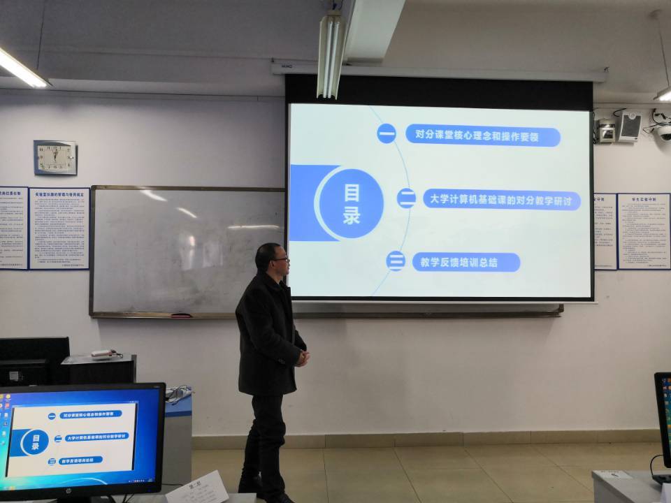 2020年1月7日下午,由伟德victor1946网站教师发展中心主办,伟德国际victor1946、计算机科学与信息工程公司承办,大学计算机教学部和计算机应用实验教学中心协办,公司梁新元教授主讲的“对分课堂实务操作与大学计算机基础教学改革研讨会”在启智楼80402机房举行。公司大学计算机教学部、测控与自动化系、电子信息工程系、应用物理系和公司文新公司和管理公司共计30位老师参加了本次研讨会。