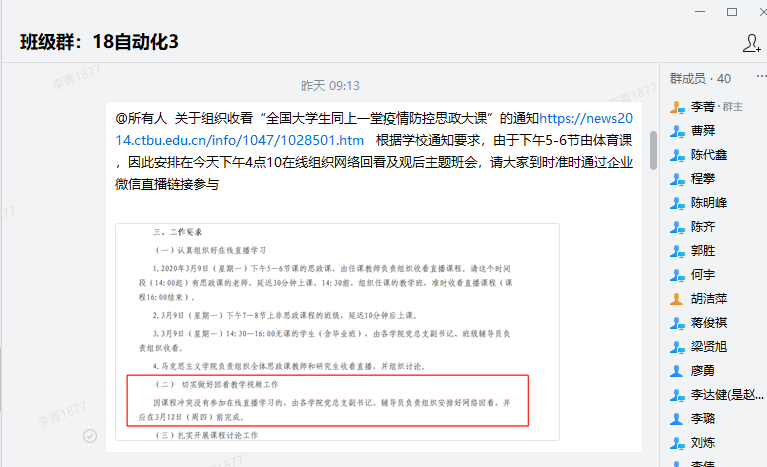 公司提前通过教学群、班级群发布详细的收看攻略,同时统一组织公司全体党员干部、分散在全国各地的员工收看直播,对于不能参加在线直播学习的,另行组织回看教学视频,确保全院师生观看疫情防控思政大课。