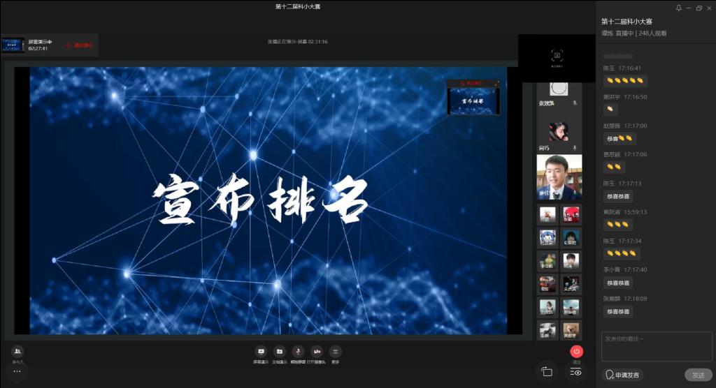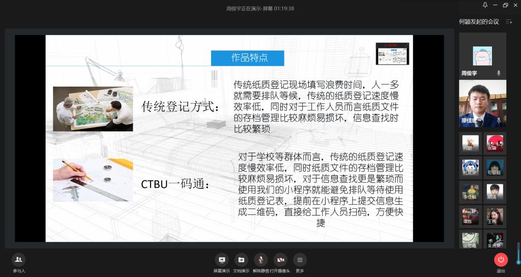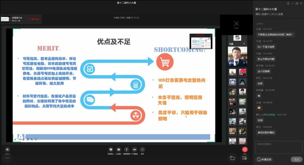 为提升同学们的专业兴趣和创新思维,培养同学们的团队精神和动手实践能力,进一步发现科技之美,计算机科学与信息工程公司、伟德国际victor1946于6月5日15:00通过企业微信线上举办了第十二届科技创新小发明决赛。计信公司杨永斌副教授、杨艺副教授、范兴容博士担任本次比赛评委,公司分党委副书记陈亚惠,学工办副主任向巧应邀出席本次大赛。