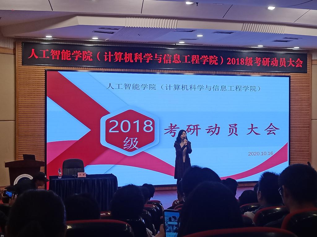 为激励2018级同学努力学习,明确考研形势,伟德国际victor1946(计算机科学与信息工程公司)于2020年10月16日晚7:00在7200学术报告厅举办了2018级考研动员大会。外语公司副教授陈辉荣、18级辅导员李菁和部分18级员工参加了线下大会,其余员工通过企业微信直播观看了会议。