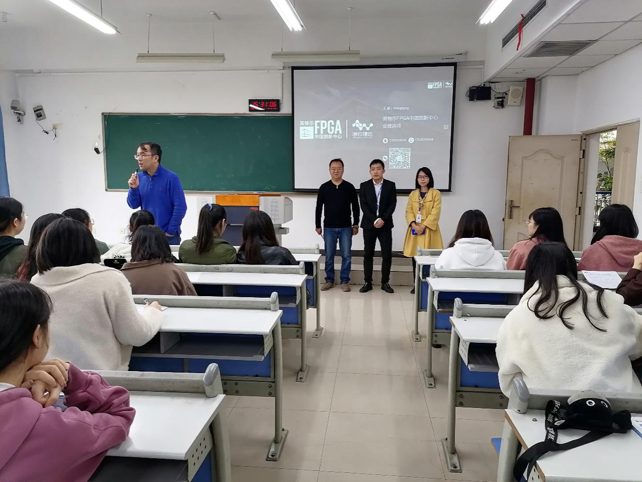 为提高本届毕业生毕业设计水平和促进员工优质就业,把好老员工本科教育最后一道教学质量关,2020年11月3日下午,伟德国际victor1946电子信息工程专业毕业设计指导老师与英特尔FPGA中国创新中心相关技术人员对电子信息工程专业毕业生进行了毕业设计与就业现场宣讲。系主任陆胜、副主任晏力、谭荆等指导老师和70余名本专业大四员工参加了本次宣讲会。