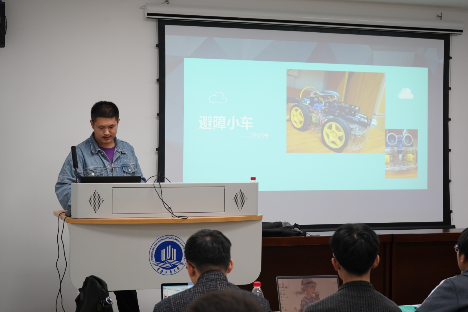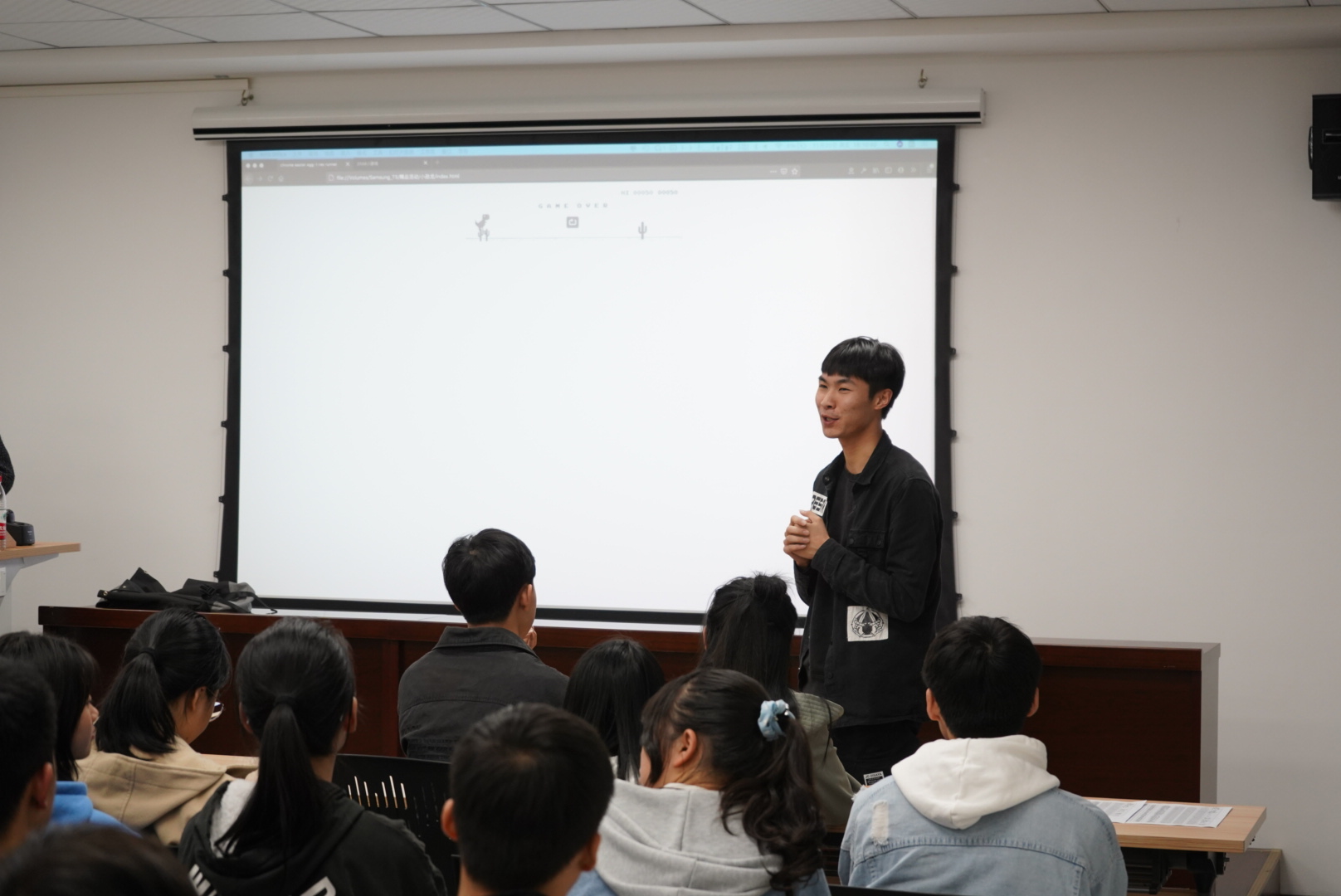 首先,盛建成从嵌入式发展对生活的影响和对社会发展的重要意义,展示了CO科创团队的“避障小车”、“踩白块”等科创作品,介绍了学习嵌入式的重要课程和学习方向。朱泽峰对Web学习方向进行了详细介绍,演示了前端在网页中的应用与后端在完整项目网站中的应用方式,介绍了前端与后端的优势。接下来,杨礼乐介绍了APP的主要功能、存在的意义及运行逻辑,分享了网易云音乐的小彩蛋、第三方微博客户端等有趣APP,并邀请四位同学上台近距离体验充电余额、手电筒等有趣小软件。最后,梁新元教授对本次宣讲活动做总结,对同学们提出了“珍惜老员工活、搭乘产业东风、学会职业规划、做好人生选择、管好课余时间、学好专业知识、促进IT发展”的建议。