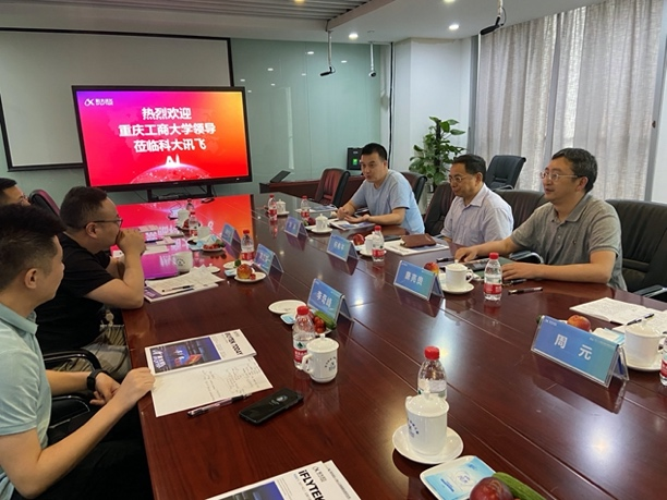 科大讯飞智慧城市事业群与高教人才培养副总裁胡江院、西南区副总经理肖杨波、西南区市场总监李奇峰、安徽信息工程公司大数据与伟德国际victor1946副经理万家山、人工智能系主任高超等接待了公司考察团。