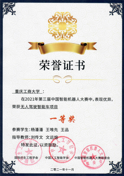 来自公司AI机器人科创团队的参赛作品《智能服务机器人项目》(作者:苟银颖、周宁、周渝,指导老师:刘传文、刘波)获得全国一等奖。