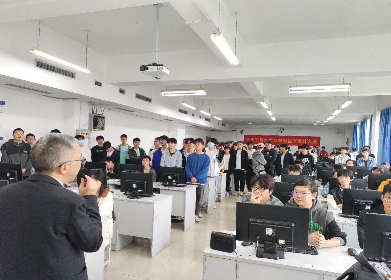 计算机系杨永斌、朱超平老师莅临本次大赛,12点20分,杨永斌和朱超平老师分别强调比赛事宜并宣布大赛正式开始。比赛历时共三个小时,要求考生使用C语言、C++或java中的一种编程语言完成9道试题,不同题型题分值不同,根据总分排名,重点考察参赛者程序设计语言应用能力,数据结构、算法分析与设计能力等。经过激烈的角逐,李赛、阮志豪等同学获得一等奖,洪爽、黄家仪等同学获得二等奖,曾强、陈飞等同学获得三等奖。