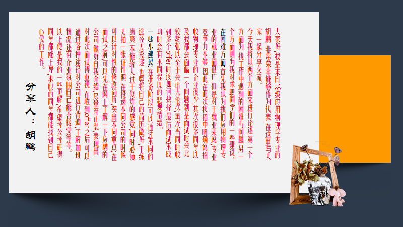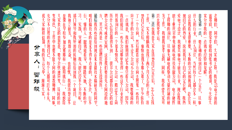 孙金兵解读了使用“重庆高校毕业生就业信息网”的操作指南,提醒同学们在求职前的准备和签约过程中需要注意的事项。同时,本次就业工作交流与促进会,还邀请了王丹妮、雷邓毅、杨潘潘、曾志华、罗胜、胡鹏等6名来自不同专业求职成功的毕业生代表,分享了自己在求职中遇到的困难、问题和经验。