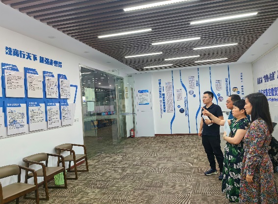 唐若晗带领大家参观了多功能教室、会议室等多向配套区域。详细介绍了临空数贸“立德树人,强技兴国”的办学宗旨,以及“打造人才新生态,赋能数贸新未来”的办学理念,现已发展成为一所集互联网运营、数字化管理等多个专业于一体的综合性培训公司。