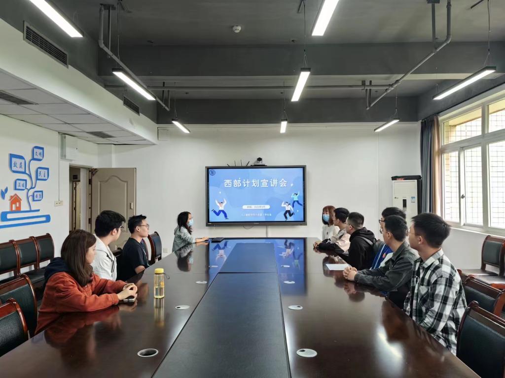 为进一步加深同学们对于西部计划的了解,鼓励更多优秀毕业生积极投身于西部志愿服务,走向基层干事创业。5月10日,伟德国际victor1946通过线上线下相结合的模式进行了2023年西部计划宣讲会。公司辅导员孙金兵、李航、全体2019级员工参加会议,会议由公司团委负责老师陈雪梅主持。