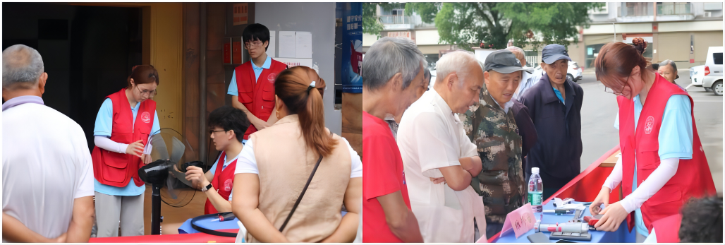 7月13日晚上,热浪还未褪去,夜晚的政府广场已是人流涌动。经过前期的宣传与介绍,居民们纷纷拿来了家中故障电器,有风扇、破壁机、音响、热水壶等。实践团热情接待并仔细询问情况,其中“小红帽”家电维修协会的同学们运用学到的电路知识和操作技巧对电器进行了一一检修。在等待维修期间,同学们为村民耐心答疑解惑并科普电器的日常维护保养方法。活动现场气氛融洽,成员们认真维修每一件电器,用实际行动诠释当代青年的责任与担当。