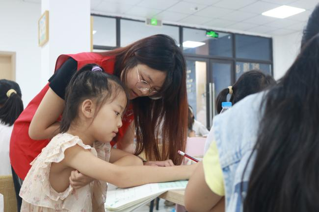 课堂上有所学,实践中有所用。从活动之初只有实践团成员构成的老师们,到后来最先完成功课的孩子们化身成一个个“小老师”去帮助其他的孩子解决问题,而小老师们在教的过程中同样也是在巩固自己的知识点,补充自身的不足,这不仅体现了青少年们互帮互助的志愿精神,也展现了新时代少年奋发进取的精神风貌。