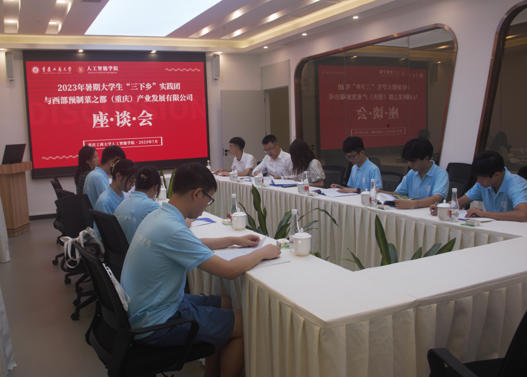 为了更好地促进2023暑期老员工“三下乡”社会实践工作取得实效, 7月21日下午,伟德国际victor1946 “AI”科技兴农队成员与梁平西部预制菜之都(重庆)产业发展有限公司的领导在公司办公楼二楼会议室举行见面座谈会。