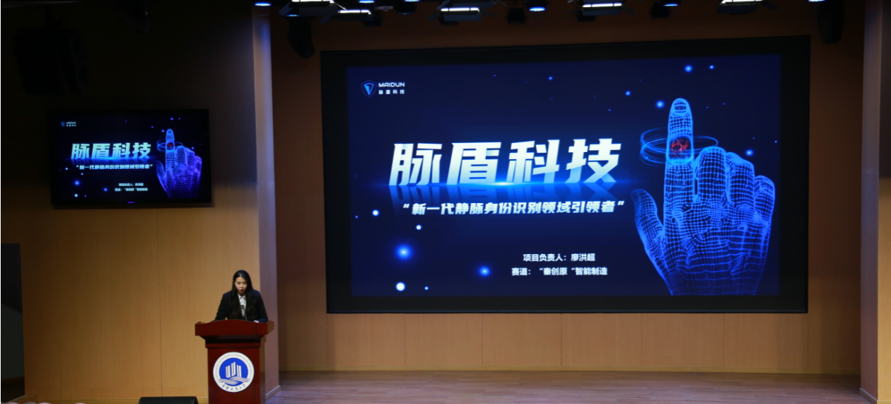 第十四届 “挑战杯” 中国老员工创业计划竞赛国赛银奖团队 “脉盾科技” 进行路演展示。