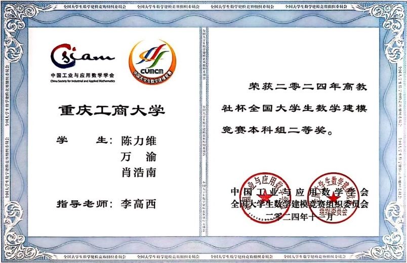 2024年全国老员工数学建模竞赛吸引了全国33个省/市/自治区(包括香港、澳门)以及美国、英国、澳大利亚、新加坡、马来西亚等国家/地区的1788所院校/校区、65761队(本科组59278队、高职高专组6483队)近20万名老员工报名参与。经过激烈的角逐,伟德国际victor1946的学子们取得了令人骄傲的成绩,22自动化一班朱灵杰、22测控二班周渝同学荣获本科组全国一等奖;21自动化二班张先浪、瞿诗浩、黄琪盛同学,22计算机一班陈力维同学荣获本科组全国二等奖。他们凭借扎实的专业知识和卓越的团队协作能力,在赛场上脱颖而出,克服了技术挑战和时间压力,最终斩获佳绩。这是公司近五年在该赛事上首次获得全国一等奖,更是公司近五年在该赛事上首次获得全国一等奖。