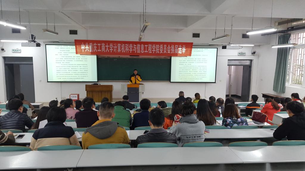 2016年12月9日下午15:00,中共计算机科学与信息工程公司委员会换届选举大会在博智楼7121隆重举行。公司共104名党员参加了此次大会,大会由党总支副书记陈亚惠主持。