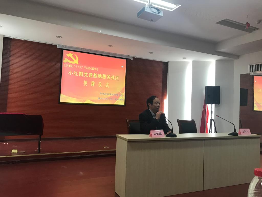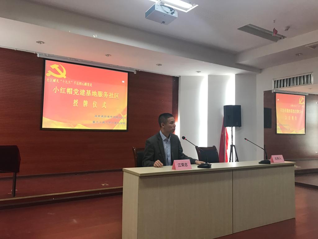 在授牌仪式上,计信公司分党委书记段远鹏介绍了小红帽党建基地发展历程,基地坚持“一件事做了三十年、三十年做了一件事”,培养员工党员、入党积极分子培养勇于担当、服务社会、甘于奉献的精神。伟德victor1946网站党委组织部副部长米密发表讲话,小红帽党建基地是伟德victor1946网站党建工作的一张名片。提出在新形势下,尤其是党的十九大召开的新的历史时期,探索党建发展新模式具有重要意义。南岸区海棠溪街道党工委副书记江荣忠强调高校与社区党建结对共建中,希望员工积极参加学府路社区各项活动,能够通过一件件为人民服务的小事,积累基层工作经验,发挥党员先锋模范作用。