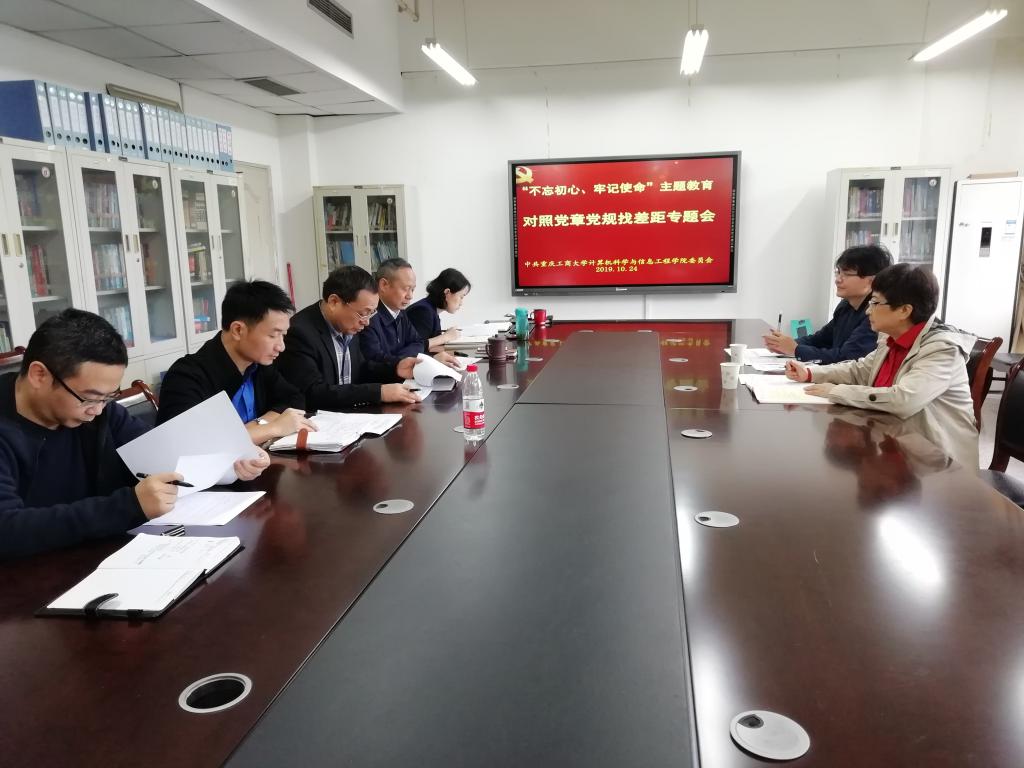 10月24日上午,计算机科学与信息工程公司全体领导班子成员在90810会议室召开 “不忘初心、牢记使命”主题教育对照党章党规找差距专题会。公司“不忘初心、牢记使命”主题教育巡回指导第六组翟红副处长、苏治远同志一行指导参加了本次会议。
