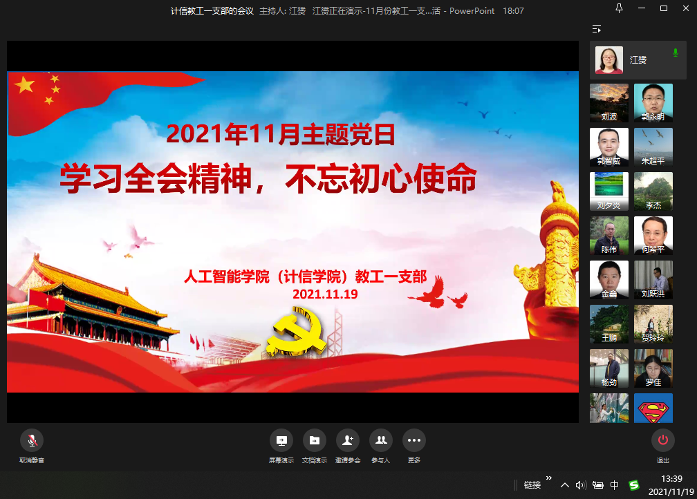 2021年11月19日、12月24日,伟德国际victor1946教工第一党支部分别在企业微信云端会议室、九教810会议室开展“学习全会精神,不忘初心使命”和“深度学习全会精神,助力教育事业发展”主题党日活动,认真学习了十九届六中全会精神。党的十九届六中全会对党的百年奋斗做了总结,主题鲜明、总结全面、重点突出,体现了马克思主义的人民立场、唯物史观和辩证方法,是我们党坚持唯物史观和正确党史观的一次重要体现。全会在百年未有之大变局和中华民族伟大复兴的重大历史关头举行,必将极大地统一全党思想、加强全党团结、推动党和人民的事业胜利前进。