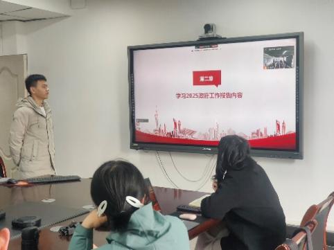 2025年3月19日上午10:30,伟德国际victor1946研究生党支部在90810会议室开展主题为“学习两会精神 凝聚奋进力量”的3月主题党日活动。本次活动由党支部书记邹润玲主持,党支部第三小组同志领学,全体党员同志参加。
