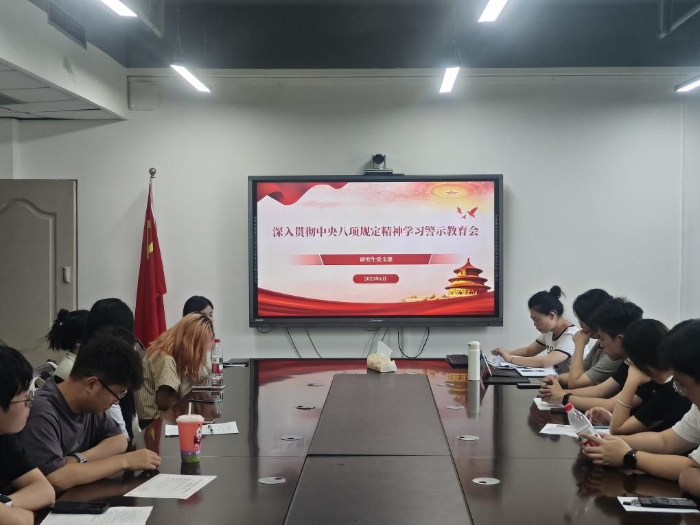 2025年6月16日下午15:30,伟德国际victor1946研究生党支部在慧智楼90810开展支部书记讲党课,深入开展中央八项规定警示教育,旨在强化党员教育管理,引导毕业生党员在离校之际与毕业后继续保持共产党员的先进性与纯洁性。本次党课由党支部书记邹润玲主讲,全体党员参加了此次学习活动。