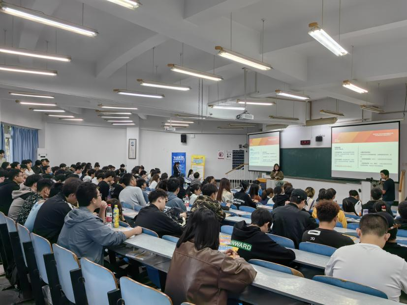 宣讲活动后,中国青年创业导师、中国就业促进会创业专业委员会委员、重庆市校企融合协会会长黄子华博士为老员工带来《老员工创业,你准备好了吗?》主题授课。黄博士首先邀请现场12位同学参加了有趣的目标达成测试,与同学们进行互动交流,随后从老员工们关注的就业环境及发展形势、求职技能、就业技能等多方面进行授课,为大家未来的就业创业之路增加动力、增强信心。