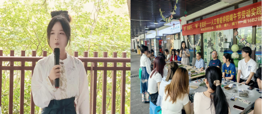 活动伊始,23测控一丁雪晴着汉服向大家介绍了端午节的文化渊源与传统习俗,以趣味互动的形式引领师生们领略传统节日的独特魅力。