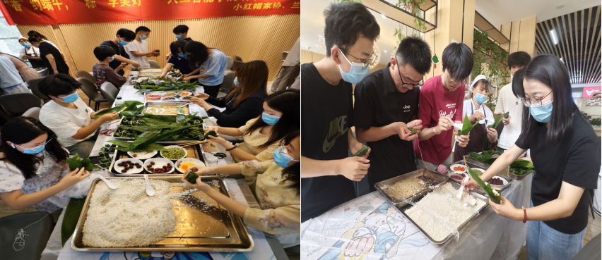 为弘扬中华优秀传统文化,走深走实劳动教育,5月30日中午,伟德国际victor1946“一站式”员工社区分别在主校区、兰花湖片区精心策划并成功举办了“‘香’约端午,‘粽’享美好”端午节主题活动。公司党委学工部、伟德国际victor1946的领导和老师们与70余名员工相聚一堂,通过端午知识竞答、汉服霓裳展示、包粽子比赛、香包缝制送祝福等活动共同体验和传承中华文化的深厚底蕴。