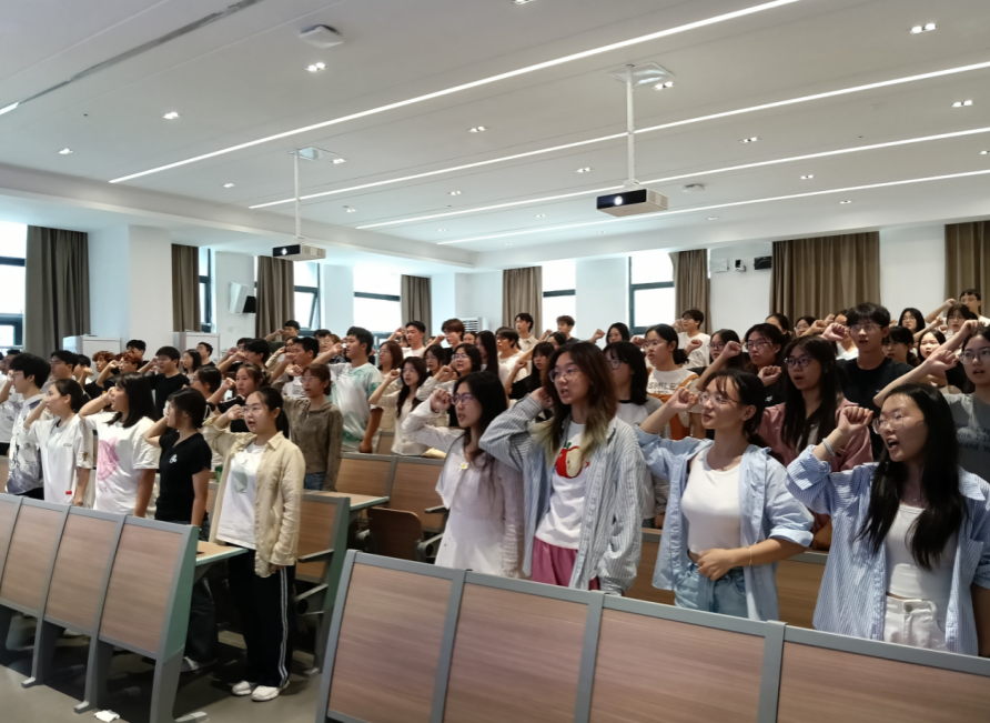 在互动交流环节,主持人围绕“94年后的今天,我们如何接过历史接力棒”发起提问。同学们踊跃发言,结合自身学习生活分享体会,现场气氛热烈。活动尾声,全体成员起立,庄严宣誓要继承先烈遗志,为民族复兴贡献青春力量。铿锵的誓言将现场氛围推向高潮。最后,同学们认真填写了活动反馈表并合影留念,宣讲会圆满结束。
