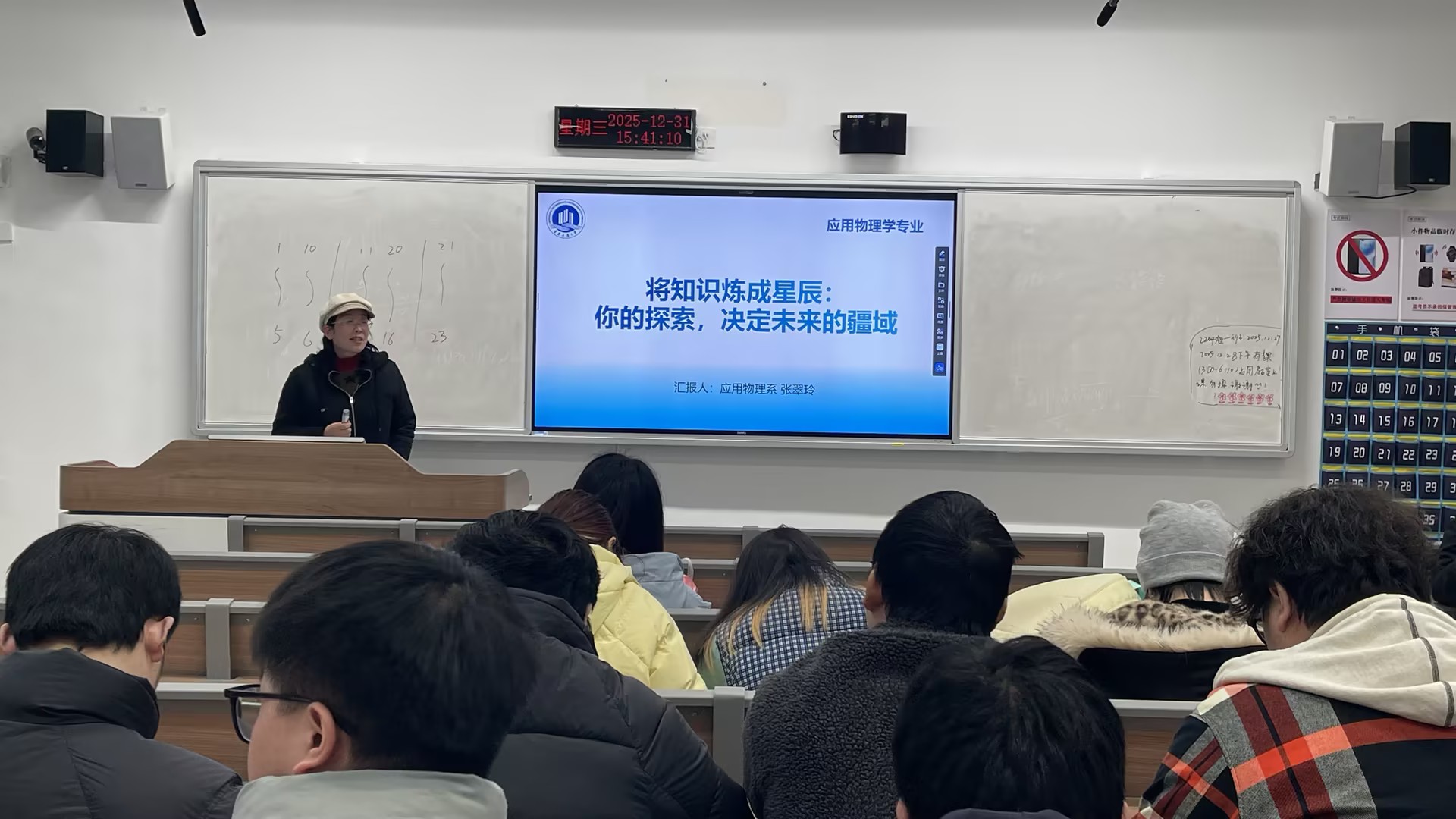 应用物理系主任张翠玲结合国家科技发展战略与重庆市产业布局,系统阐述了应用物理专业尤其是光电方向所面临的重大发展机遇。她指出,重庆市当前正全力构建“6+3”未来产业体系,并将 “光子与量子技术” 明确列为三大高潜力未来产业之一,这为本专业员工扎根重庆、服务区域发展提供了直接而有力的政策支撑与产业平台。张主任进一步分析,在战略引领与市场需求的双重驱动下,光学工程、光电检测、光通信、半导体器件及智能视觉等核心领域正迎来关键发展期。高端制造、前沿科研与高新技术企业等领域对既具备扎实物理基础、又掌握光电技术与跨学科能力的复合型人才需求日益迫切。她勉励同学们,应主动将个人发展融入国家和重庆的战略布局之中,在校期间务必筑牢数理基础、精进专业能力、拓展技术视野,持续提升综合素养与创新实践能力,为未来投身光电及相关领域、应对行业变革与竞争做好充分准备。
