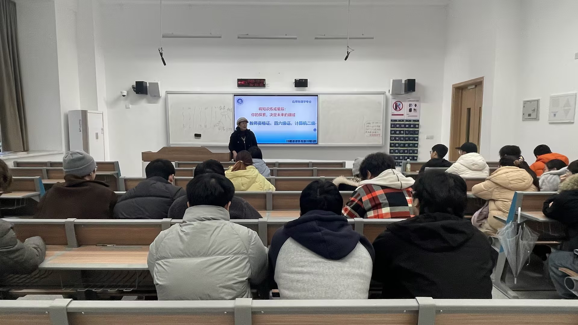 在就业指导环节,张翠玲结合往届毕业生就业情况,介绍了多元化的职业发展路径。她表示,毕业生既可进入电子科技、光电信息、科研院所等单位从事技术研发与管理等工作,也可继续深造,在学术科研道路上持续发展。她建议同学们提前规划,充分利用假期完善简历、参与实习、关注行业招聘动态,逐步明确个人职业定位。