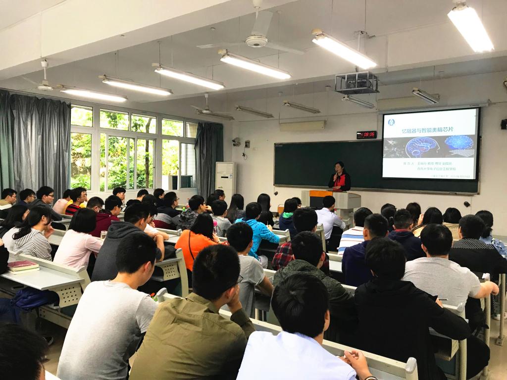 2018年4月26日下午,公司邀请西南大学电子信息工程公司副经理王丽丹教授在慧智楼90325教室为公司师生举办了“忆阻器与类脑智能信息处理系统”学术讲座。伟德国际victor1946经理何希平教授、电子信息工程系主任彭燕妮副教授等出席了此次讲座,讲座由公司副经理杨光祥副教授主持。