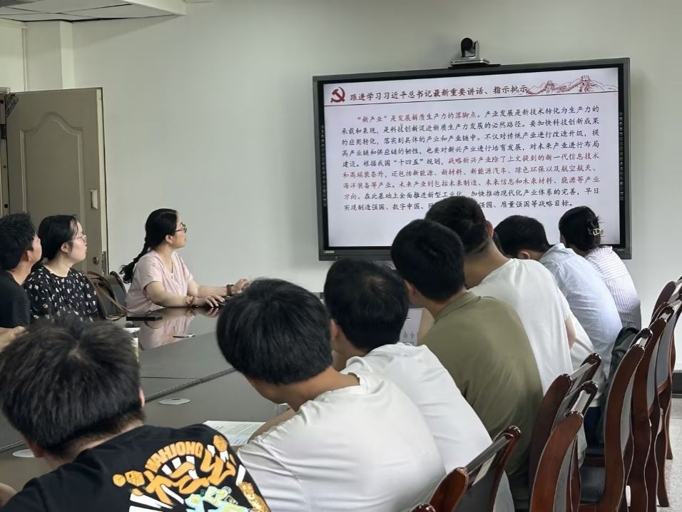 支部活动最后,与会党员针对“新质生产力的提出,带给研究生党员哪些思考和机遇”展开了热烈的讨论。党支部书记邹润玲提出全体党员要加强科学基础研究,促进多学科交叉融合,以新政策为立足点,提前做好就业职业规划。努力将技术创新和应用创新协同发展,为实现中华民族伟大复兴贡献自己的力量。