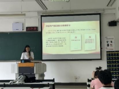 为持续深入学习贯彻习近平新时代中国特色社会主义思想,巩固拓展主题教育成果,扎实开展党纪学习教育,2024年5月17日中午12:30,伟德国际victor1946研究生党支部在慧智楼90407教室开展五月主题党日活动。活动分为三个部分,第一部分是学习习近平总书记在重庆考察调研时的重要讲话精神,第二部分是习近平总书记重要理论文章学习,第三部分开展主题为“学纪、知纪、明纪、守纪”的党纪学习教育。活动由党支部书记邹润玲同志主持,研究生党支部第四小组领学。