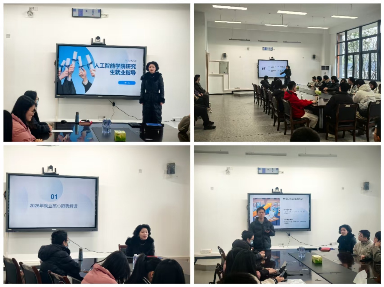 会上,周元老师围绕当前研究生就业形势,系统解读了2026年研究生就业核心趋势,结合人工智能学科特点,深入分析了行业发展动向与岗位需求变化。随后,周老师重点介绍了重庆本地高需求行业与重点岗位清单,引导同学们立足区域产业布局,科学制定就业目标。