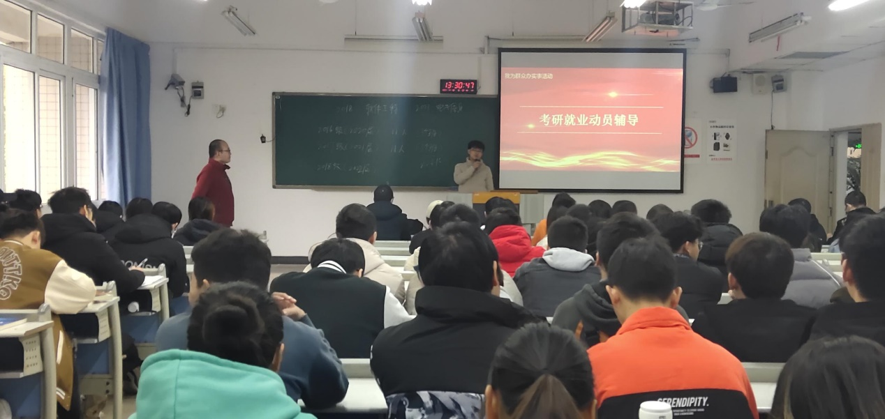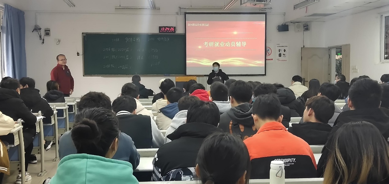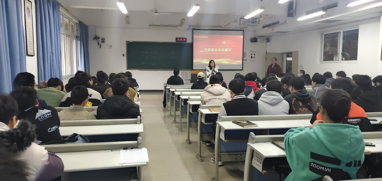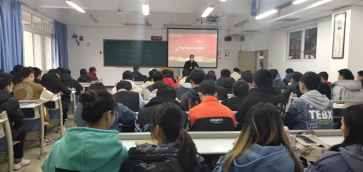 李明首先从当前就业形势、公司历年就业情况、职业规划等作了详细讲解。他强调,同学们一定要树立正确的就业观,提前规划,为求职或考研做好充足的准备。