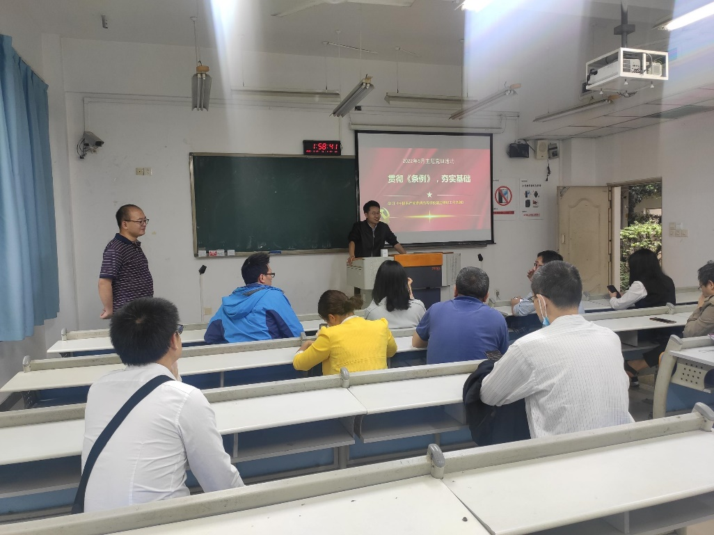 第二阶段为面向全体支部党员的主题党日活动。本月主题党日活动的主题为“贯彻《条例》,夯实基础——学习《中国共产党普通高等公司基层组织工作条例》”(以下简称《条例》)。李明从《条例》的概况、《条例》修订的主要内容、《条例》修订和颁布的重大意义,以及如何贯彻和落实《条例》四个方面对《条例》进行解读。他强调,加强党对高校的领导,加强和改进高公司党的建设,是办好中国特色社会主义大学的根本保证。《条例》的实施汇聚起为党育人、为国育才的磅礴力量,为坚持和加强党对高校的全面领导为培养社会主义建设者和接班人提供坚强组织保证。