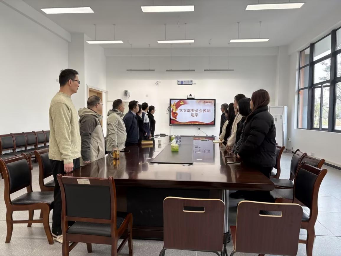 随后,支部严格按照组织程序进行换届选举。本次大会应到党员20名,实到20名(线下参会16名,线上参会4名),符合选举规定。全体党员齐唱国歌后,原支部书记张翠玲代表上届支委会做工作总结报告。会议审议并通过了选举办法草案,推选出监票人与计票人,以无记名投票方式选举产生新一届支部委员会。许江、张翠玲、胡健、杨旭、杨慧琦等5位同志当选支部委员,张翠玲同志任支部书记。申渝同志向新当选委员表示祝贺,并对支部今后工作提出期望。选举仪式在《国际歌》声中圆满结束。