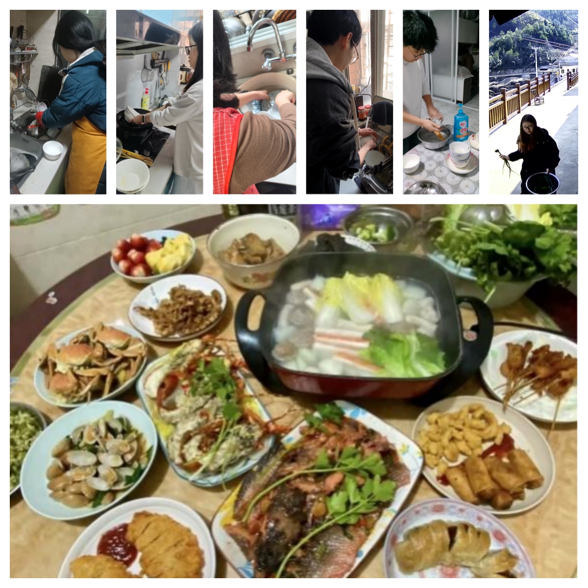 假期里,周渝、付静、张佳俊、陶诗雨、蒋杨、徐昌菊等同志主动承担寒假期间饭后洗碗任务。有同志坦言,连续洗碗一段时间,才真正体会到长辈日复一日的辛劳。当然,厨房也成为不少员工党员表达孝心、锻炼自我的舞台,有的同志从煮粥炒蛋学起,逐步能独立操持一桌家常菜,比如陈鸣烨同学首次独立完成年夜饭,在家人的笑容中收获了满满的满足与幸福。