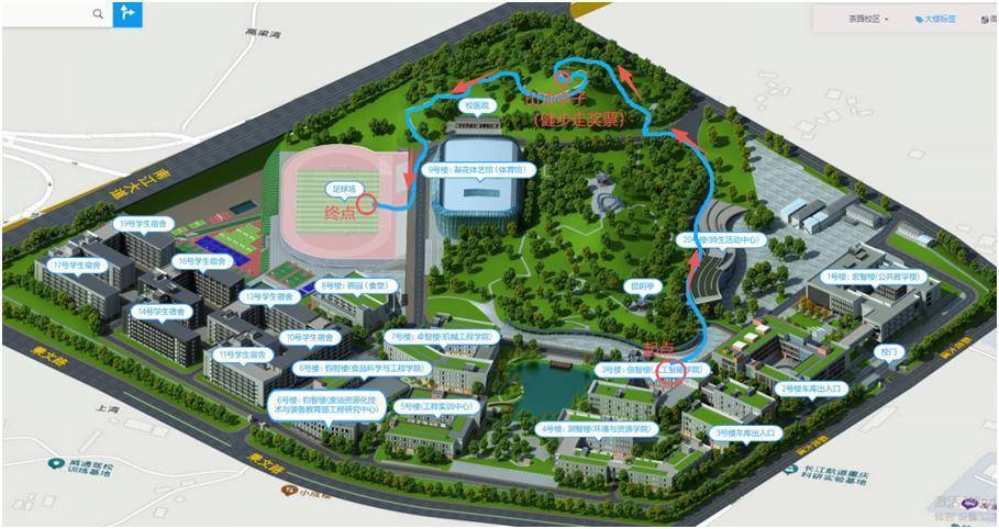 金秋十月,为让全院教职员工熟悉新校区环境,亲近自然,通过健步走锻炼身体,促进教职工之间的交流与分享,伟德国际victor1946工会近日在茶园校区举行了健步走活动。出发起点为信智楼,折返点是山上凉亭,终点为足球场,如图1所示。