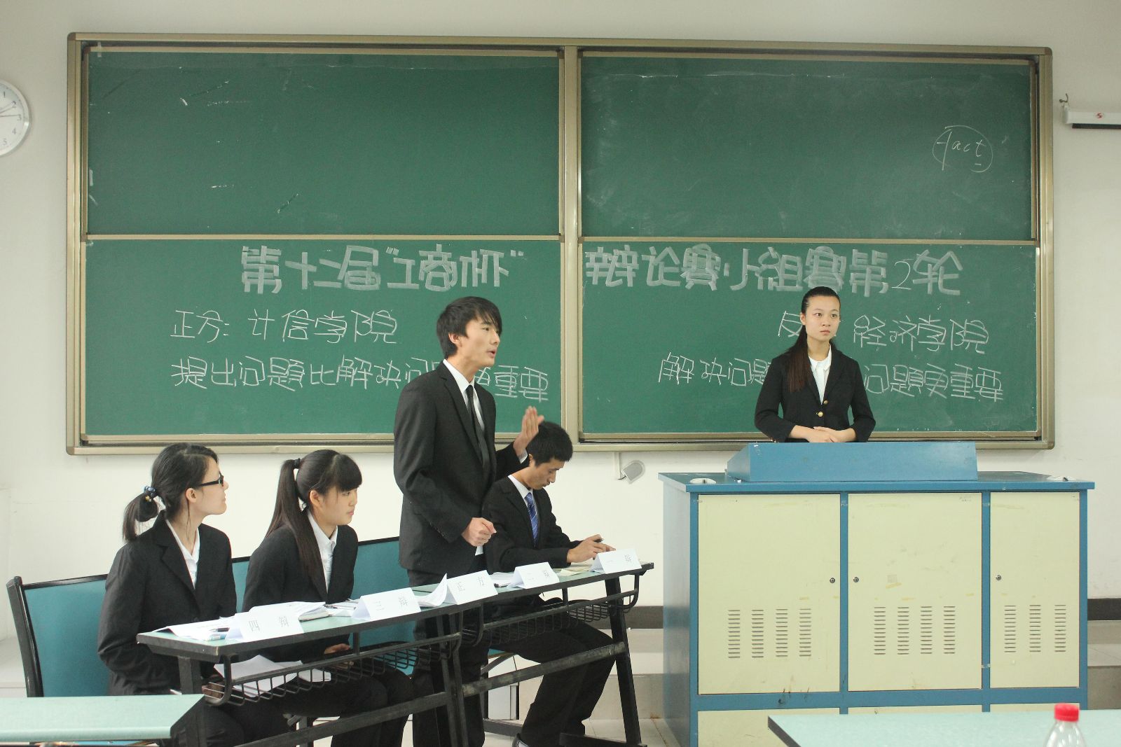 2013年11月22日,“工商杯”辩论赛小组赛第二轮在兰花湖区进行。计信公司与经济公司的对抗赛地点为20402,计信公司担任正方,辩题为“提出问题比解决问题更重要”,经济公司则持相反观点,辩题为“解决问题比提出问题更重要”。此次评委为各个院系的老师。