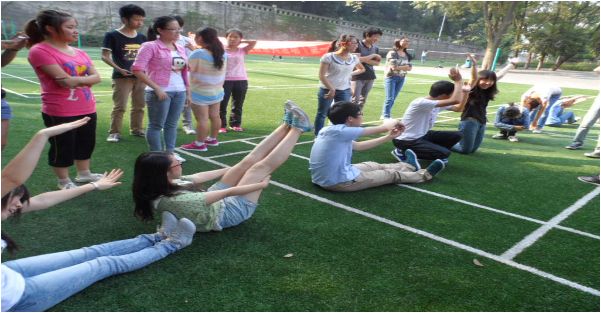 全体志愿者们于12点到达北区羽毛球场,经过简单的场地布置后,所有干部干事通过报数分为6个小组,“计信义协素质拓展活动”正式开始。志愿者们先后进行了串名字游戏,盲人方阵,勇于承担责任,踩报纸,疯狂的设计,地雷阵,五毛一块共7项活动。
