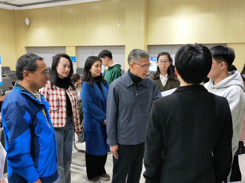 陈运超亲切地慰问了现场的工作人员,关心应聘同学的就业进展情况,慰问了前来招聘的企业单位,了解企业情况和人力资源需求,并与计算机、通信、自动化、测控和物理等专业的多名同学亲切交谈,就如何优化个人简历、向用人单位展示个人竞争实力等方面进行了应试应聘技巧现场指导。在招聘会现场,陈运超还与伟德国际victor1946何希平、张未,以及毕业班辅导员深入交流,指导公司开展促就业工作。