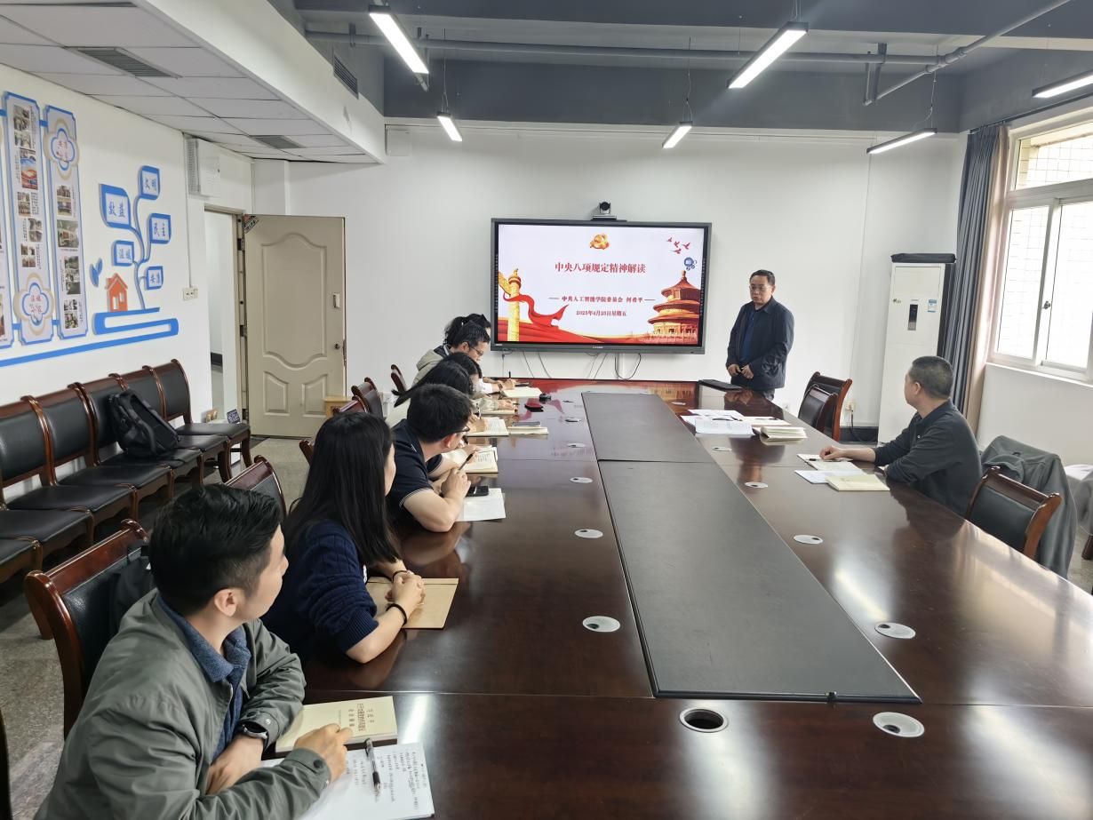 为深入贯彻落实中央八项规定及其实施细则精神,持续推进全面从严治党向纵深发展,人工智能公司党委于4月25日下午在慧智楼90810会议室召开党支部书记例会,进行深入贯彻中央八项规定精神学习专题教育培训,公司党委书记何希平同志作《中央八项规定精神解读》专题党课,院全体党支部书记参加学习。
