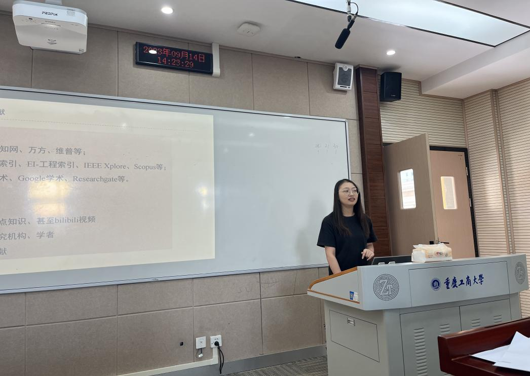 2022级研究生章勤在科研上表现突出,在本科期间就有多篇学术论文发表。章勤同学结合自身经历,针对目前研究领域遇到的问题及瓶颈,提出新颖的科研方法,建议同学们主动学习、兴趣学习。然后她向新生分享了很多实用的学术资料网站和工具,帮助新生查阅文献和写论文。章勤学姐分享的心得体会为初入科研海洋的同学提供了宝贵的经验。在此次学术分享会中,同学们认真聆听,并且提出自身的困惑向学姐请教。