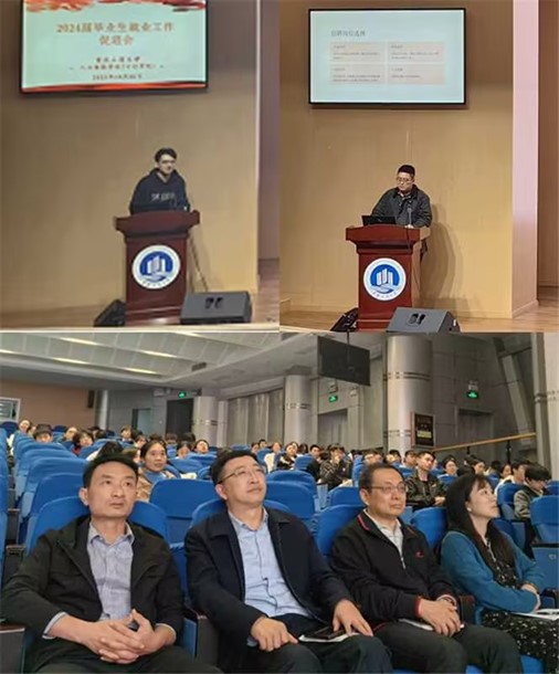 本次就业工作促进会,还邀请求职成功的毕业生代表智能科学与技术刘波、电子信息工程刘林林,分享了他们在求职中遇到的困难、问题和经验。交流发言中两位同学结合自身的求职经历,与同学们分享求职信息的获取、简历的撰写、自我介绍的技巧、就业单位的选择等方面的经验,希望同学们都能结合自己的实际情况,找到心仪的工作岗位。